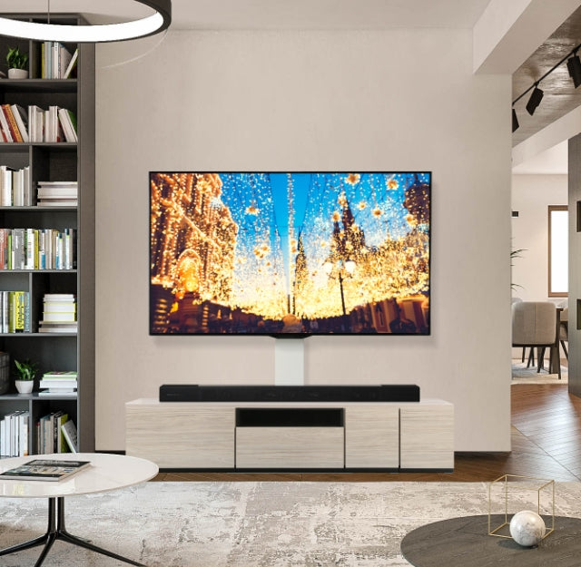 大画面を自由に置いてどこからでも楽しめるリビングに最適なモデル。