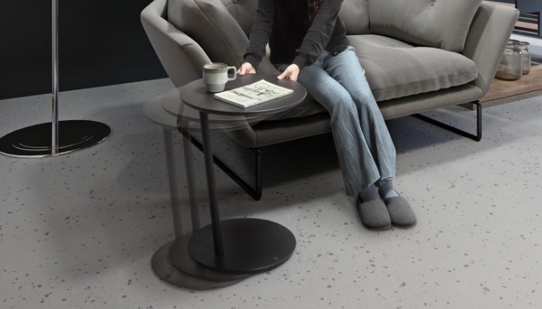 お部屋の美しさを保つ石目柄とスチールの シンプルモダンなテーブル