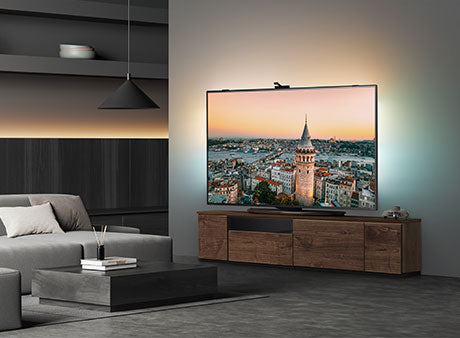 上部に設置されたカメラが画面の色を読み取り、映像とシンクロしてLEDを光らせます。