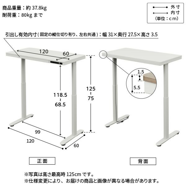 電動で高さを変更可能なデスク(75cm~125cm)