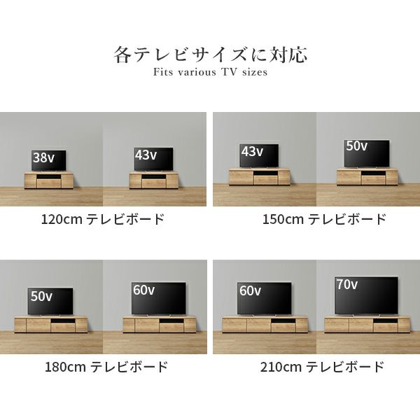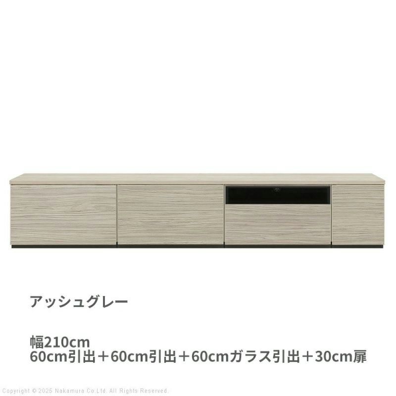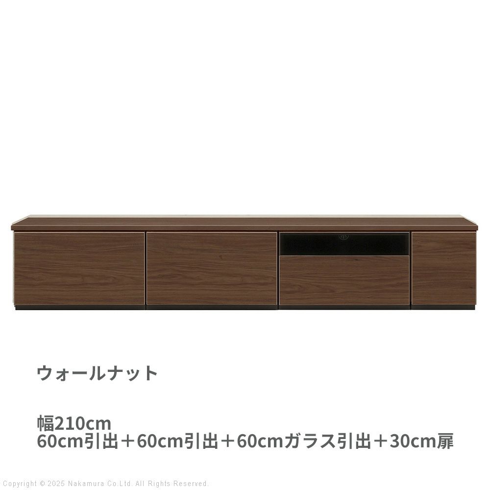 幅210cm: 60cm引出 + 60cm引出 + 60cmガラス引出 + 30cm扉