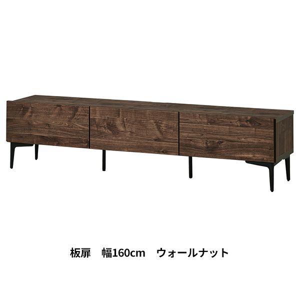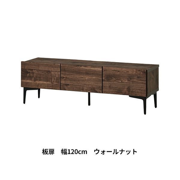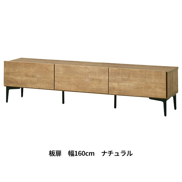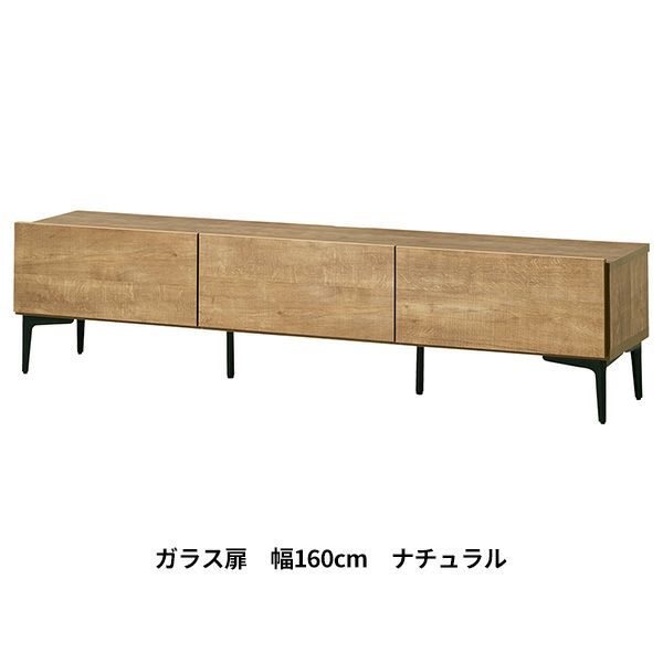 木目柄とスチールの組み合わせが印象的な脚付きテレビ台。