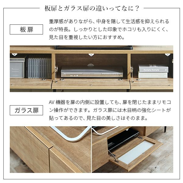 板扉と見た目に差がなく、内側はガラス扉になってるタイプ。扉を閉じたままリモコンで機器の操作が可能。機器操作が多い方はガラス扉がオススメ。