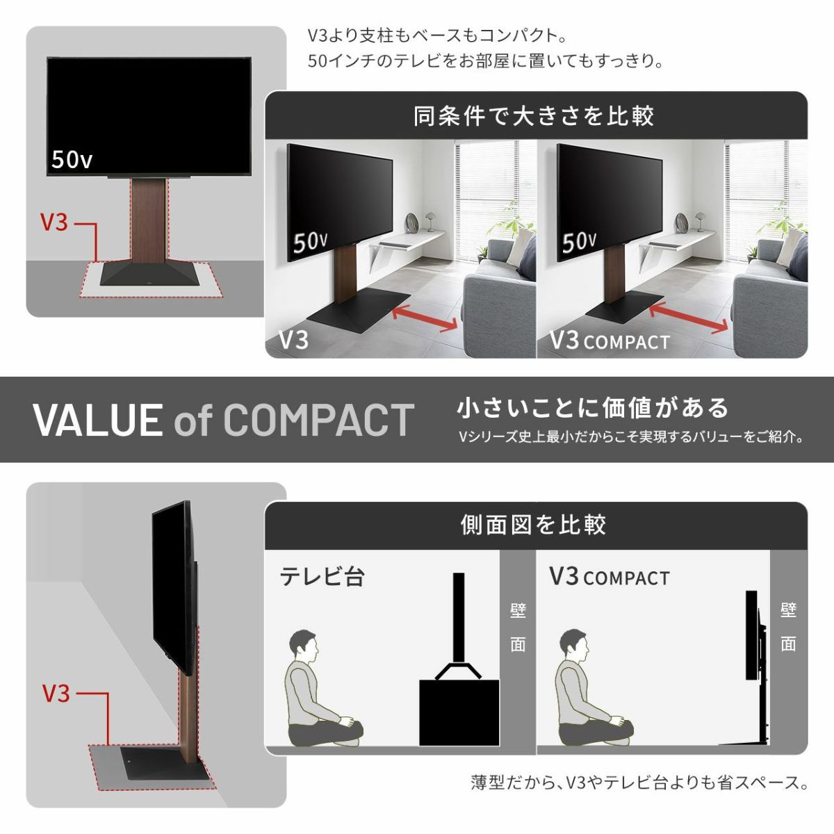 他の画像を見る どこに移動しても美しく。見たい場所でテレビを見られる、心地よい空間に。 【特別set】A2 LOWTYPE 3点セット(サテンブラック) 販売価格 ¥ 36,370 税込 カートに入れる