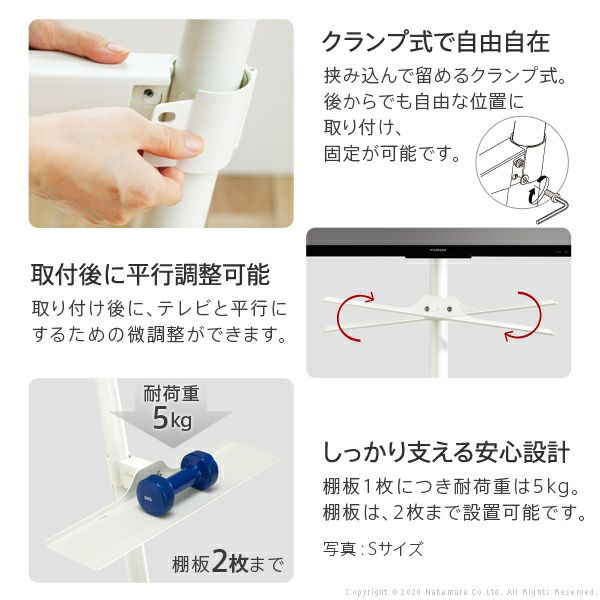 A2のスタイリッシュなデザインをそのままに、高音質化を叶えるサウンドバーを「無段階調節」で取り付け可能な専用棚板。
