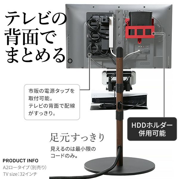 厚さ26mmの超低床キャスターベースのテレビスタンドです。スムーズに移動・回転ができるため、お好みの位置・向きに合わせられます。