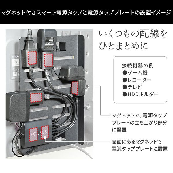 電源コード・電源タップをテレビの背面でまとめるための電源タッププレート。背面でまとめることで、足元がよりスッキリ。