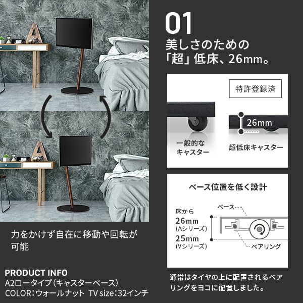 (1)キャスター付きテレビスタンド A2 LOWTYPE(ウォールナット)