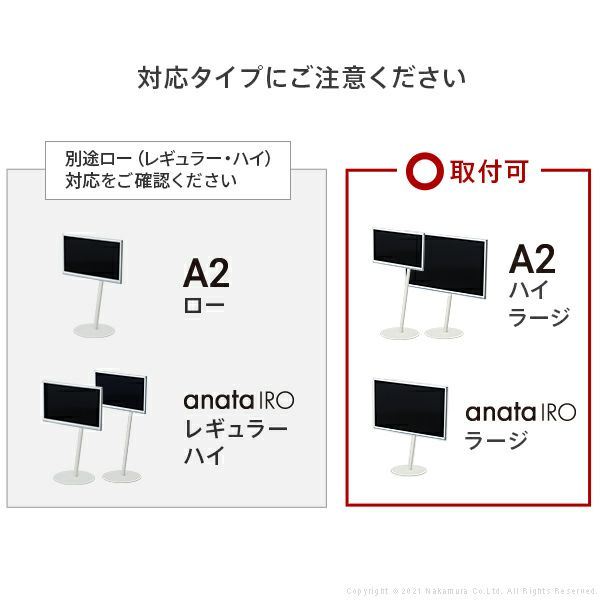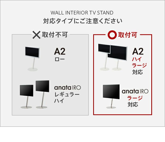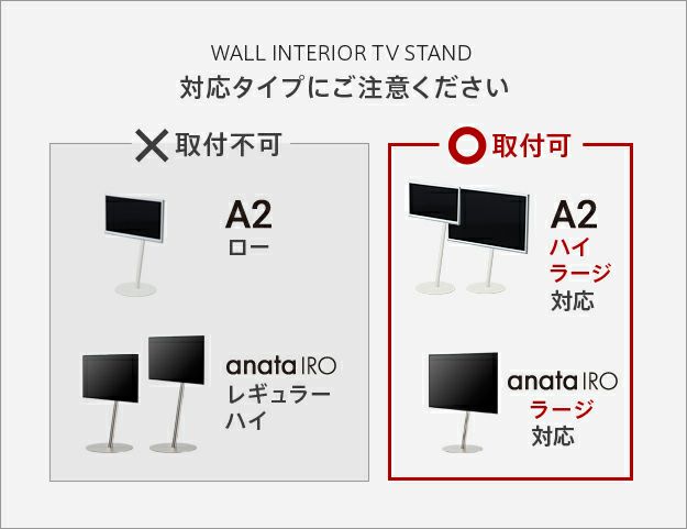 ※「取り付け可能なテレビの機種(テレビ対応表)」は「A2 LARGE TYPE」をご確認ください。