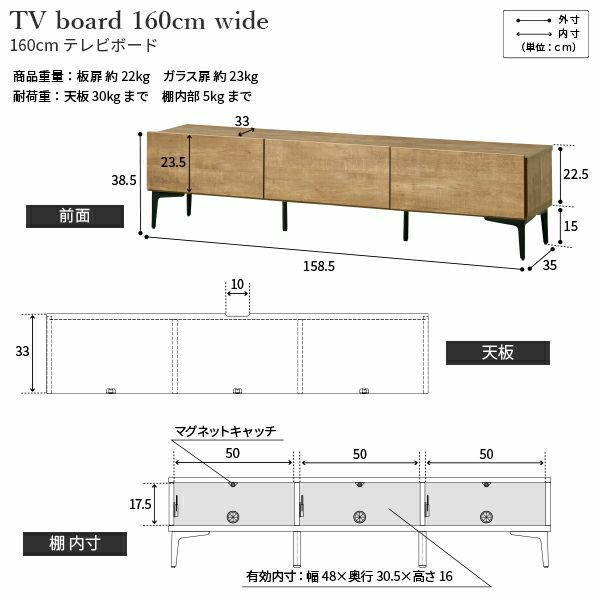 【幅160cm・ガラス扉】