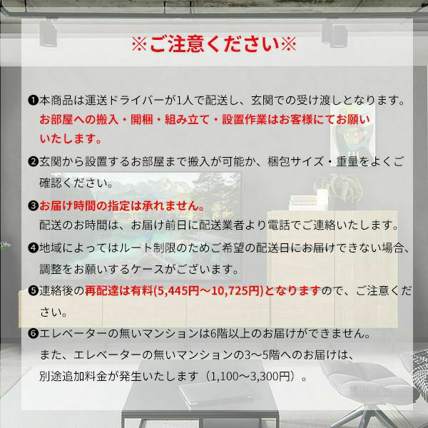※テレビ台FVは運送ドライバーが1人で配送し、玄関での受け渡しとなります。