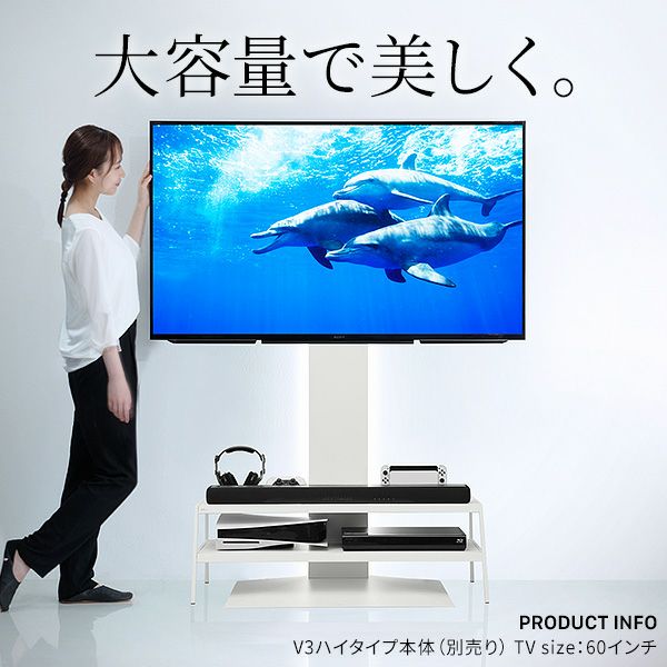大型テレビに高さの自由を与え、視聴スタイルのみならず暮らし方さえも変えるテレビスタンド「WALL INTERIOR TV STAND V3」。