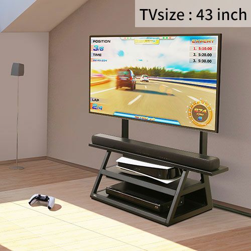 収納性があり、キャスター付き、高さを変えられるスマートなテレビスタンド。