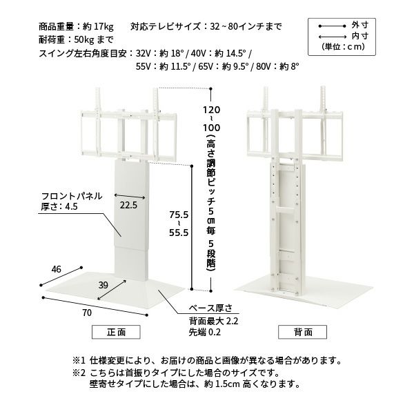 V3SWは壁に寄せて使用するテレビスタンドです。