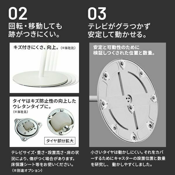 お部屋の中で移動・回転がスムーズな超低床キャスター付き(特許取得済み)。