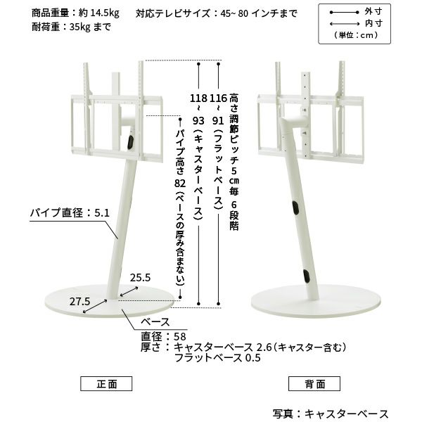 厚さ26mmの超低床キャスターベースのテレビスタンドです。スムーズに移動・回転ができるため、お好みの位置・向きに合わせられます。