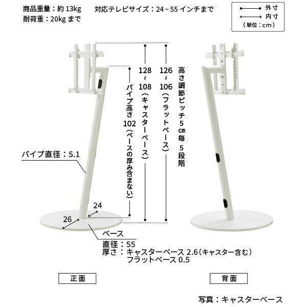 厚さ26mmの超低床キャスターベースのテレビスタンドです。スムーズに移動・回転ができるため、お好みの位置・向きに合わせられます。