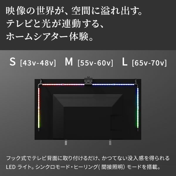 フック式でテレビ背面に取り付けるだけ、かつてない没入感を得られるLEDライト。