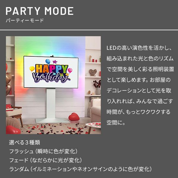 画面を超えて光が広がることで、映像がお部屋に広がったような効果を演出し、没入感を生み出します。