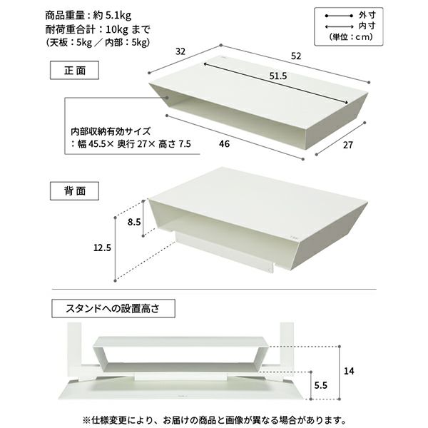 *棚板の耐荷重は、天板・内部各5㎏ 合計10kgまで(シェルフ本体の重量は含まず)