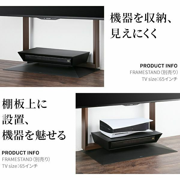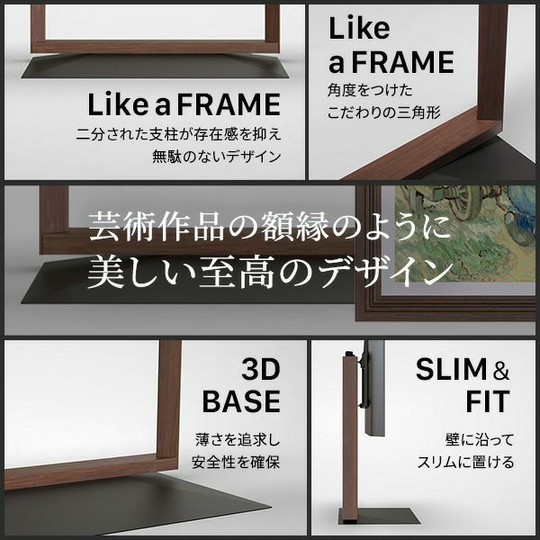 FRAMESTANDは壁に寄せて使用するテレビスタンドです。