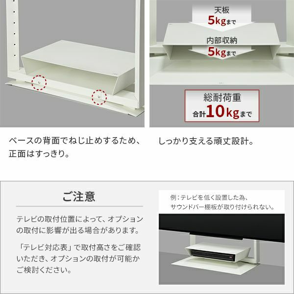 ※フローティングシェルフ・サウンドバー棚板は各1枚ずつ取り付け可能。