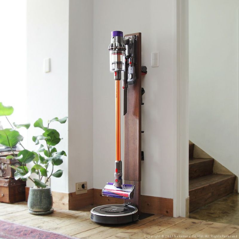 いまや生活に欠かせないコードレスクリーナーとロボット掃除機を、スペースを奪うことなく同時に収納。その佇まいまで美しく仕上げることで、クリーナーを「インテリア」の一部へ変えていきます。