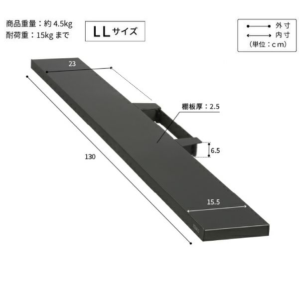 LLサイズ:幅130cm×奥行15.5cm 、 耐荷重~15kg。