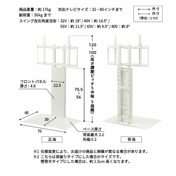 | タイプ | 壁寄せタイプ | 壁寄せタイプ | 壁寄せタイプ | キャスター付き自立タイプ | 壁寄せタイプ | キャスター付き自立タイプ |