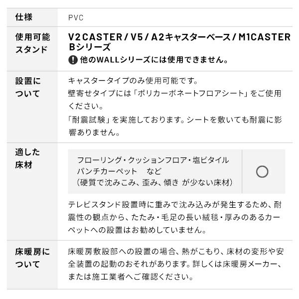 ※壁寄せテレビスタンドには専用のポリカーボネートシートをご使用ください。