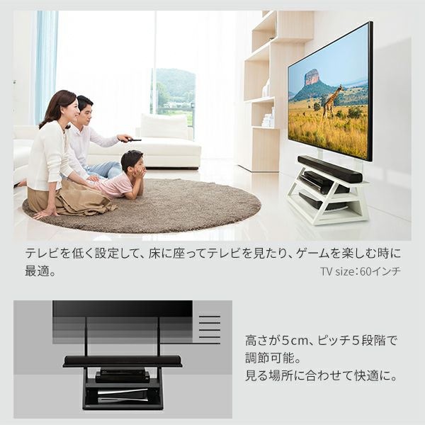 さらにテレビの高さも変えられるので、視聴環境に合わせて調節も可能。