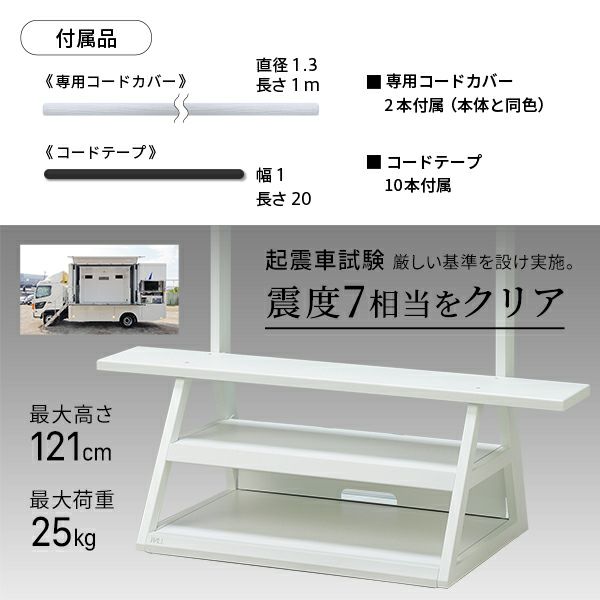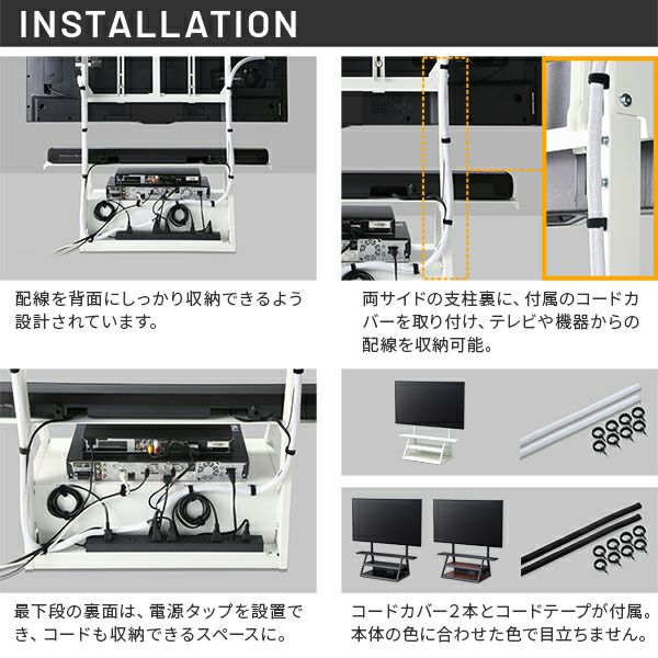 機器が多い分整理が大変な配線も、支柱の裏できれいにまとめられるため、周囲の清潔が保たれます(専用コードカバー付き)。