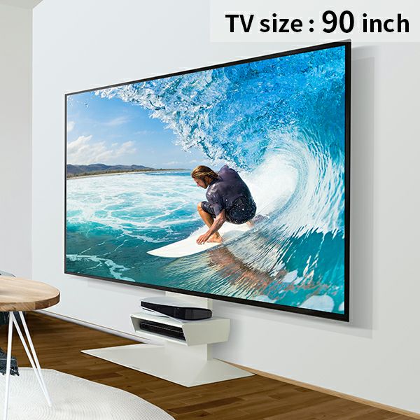 大型テレビを取り付けた際のバランスを計算してデザインされたベース・フロントパネルは、大型テレビに洗練された美しさと安心の安定感をもたらし、あらゆるインテリアと調和します。