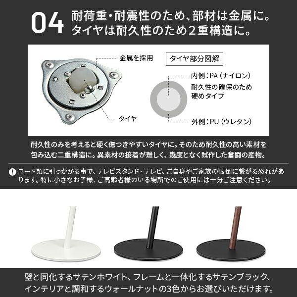 お部屋の中で移動・回転がスムーズな超低床キャスター付き(特許取得済み)。