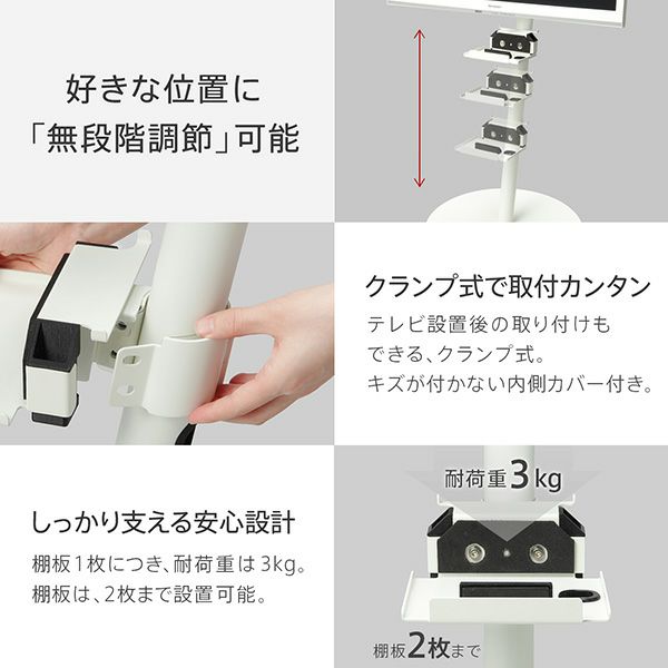 他の画像を見る テレビスタンドもデバイスも一緒に移動。機器を集約しても美しく。 【ChristmasSet】A2 HIGH TYPE 4点セット(キャスターベース・サテンホワイト) 販売価格 ¥ 77,790 税込 カートに入れる