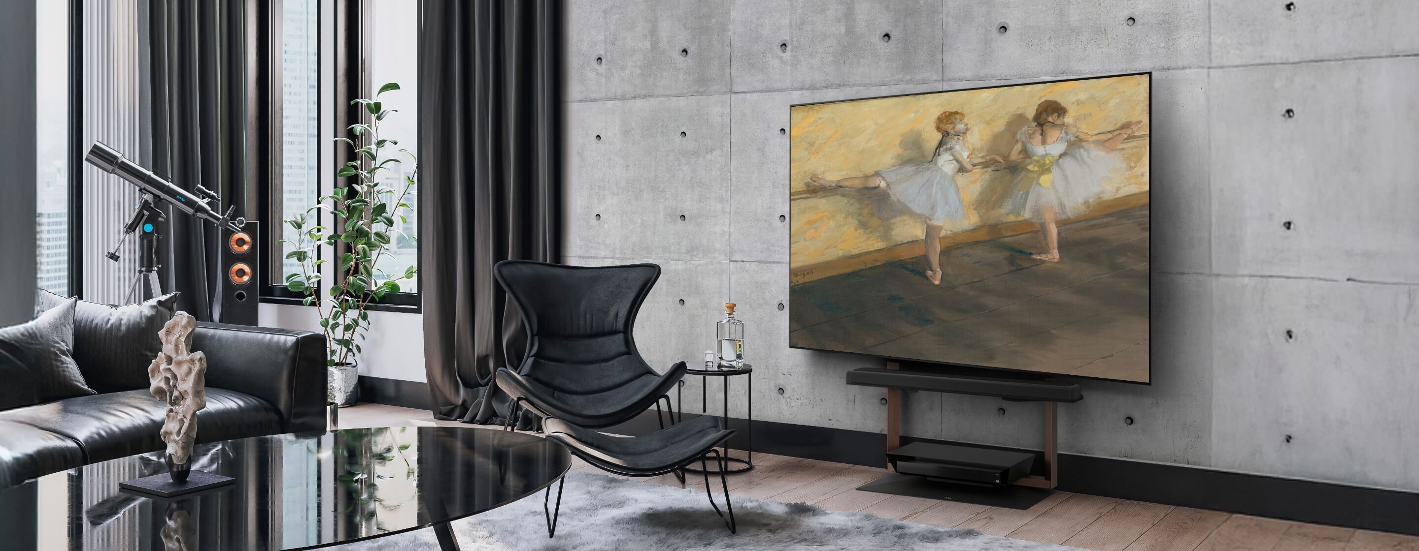 壁掛けテレビのように美しく、 でも、壁掛けテレビよりも自由で便利な一台。