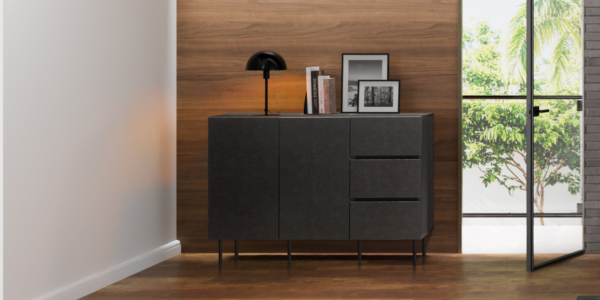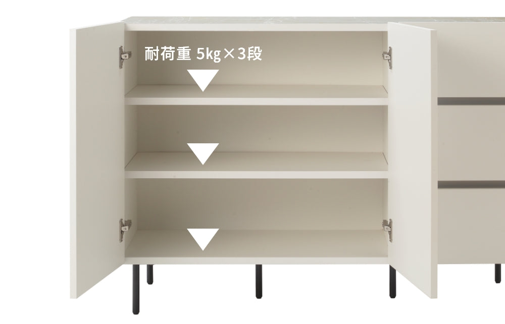 お部屋の美しさを保つ石目柄とスチールの シンプルモダンなキャビネット