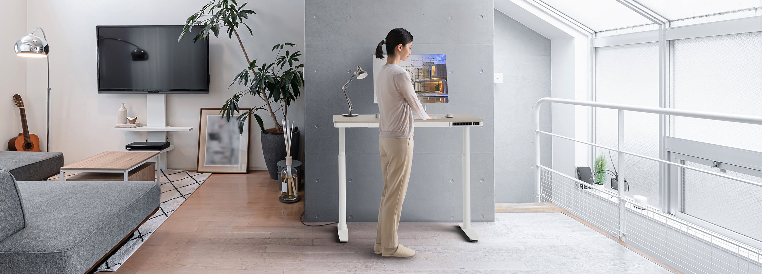 電動の動きがスムーズで高さ調節(75cm~125cm)が快適なため、毎日使いやすく暮らしが快適で自由に変化します。仕事やゲームではイスに座っていつも通りに。疲れたら立ってみると脳が活性化して、良いアイデアが生まれたり。趣味の時間も立って作業すると身体が楽でになったり。デスクで過ごす時間すべてを快適に過ごしていただけます。