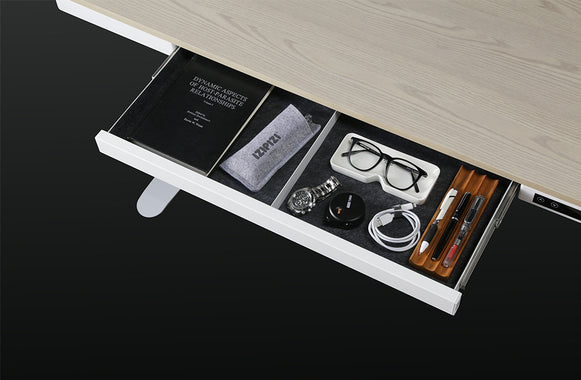 引出し付きで角も丸く優しいデザインのため、日々の暮らしの中心にも自然に溶け込みます。仕事や趣味に、場所を選ばず没頭できるデスクです。