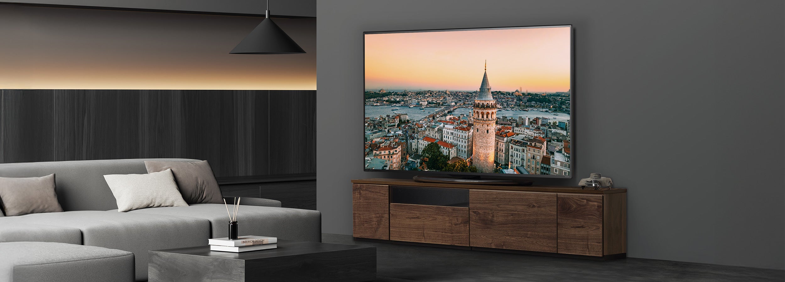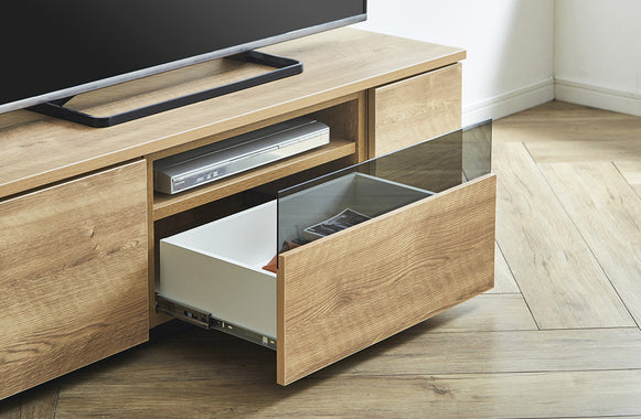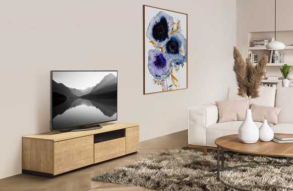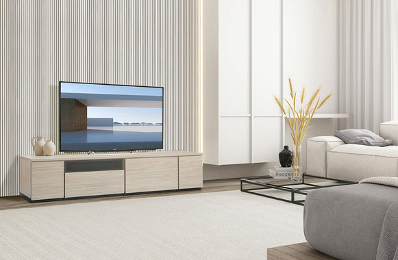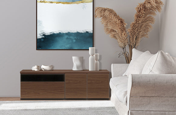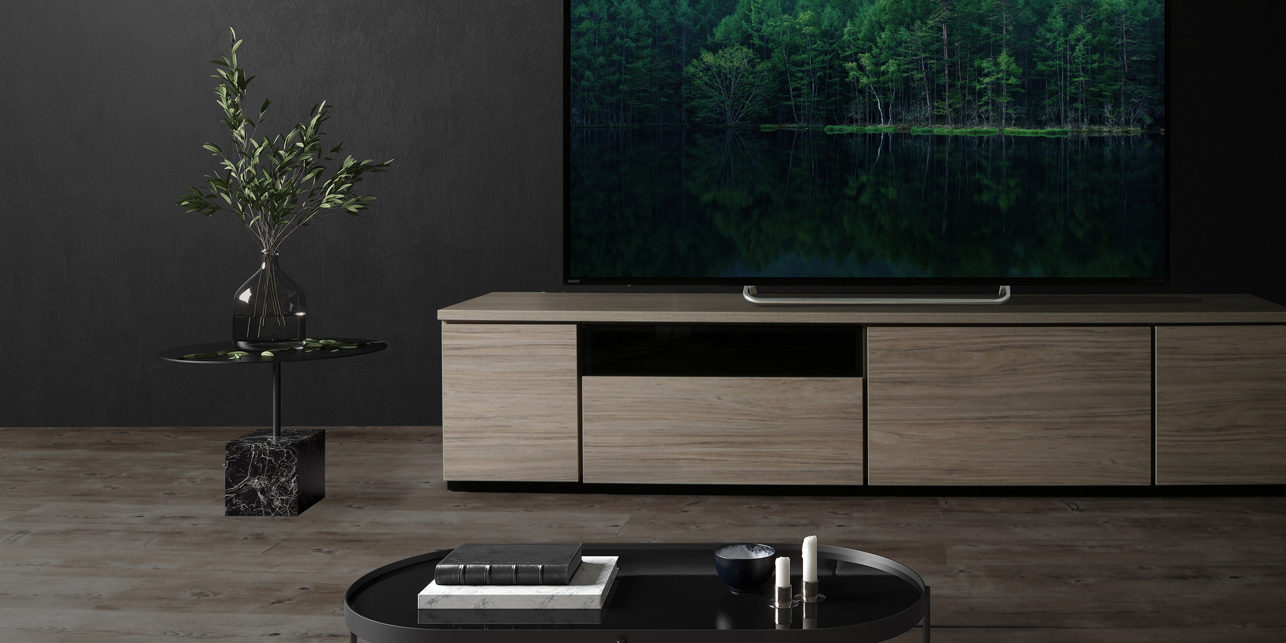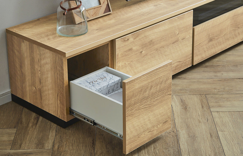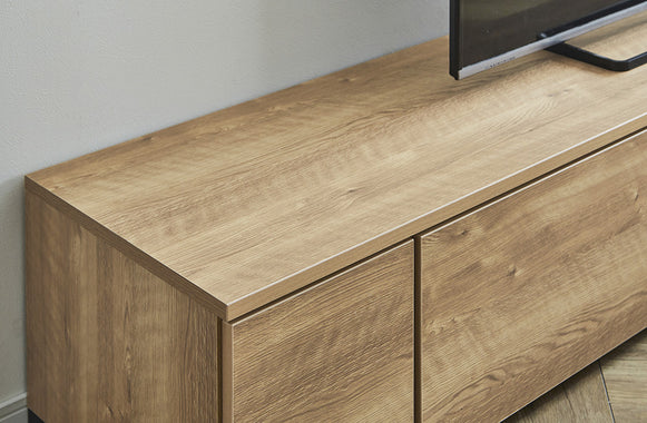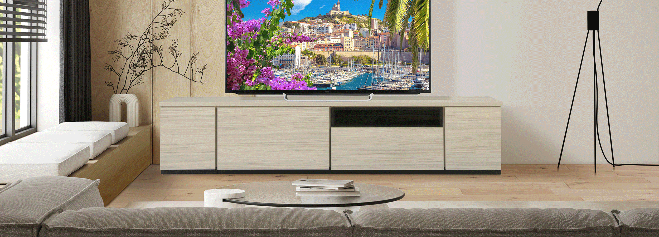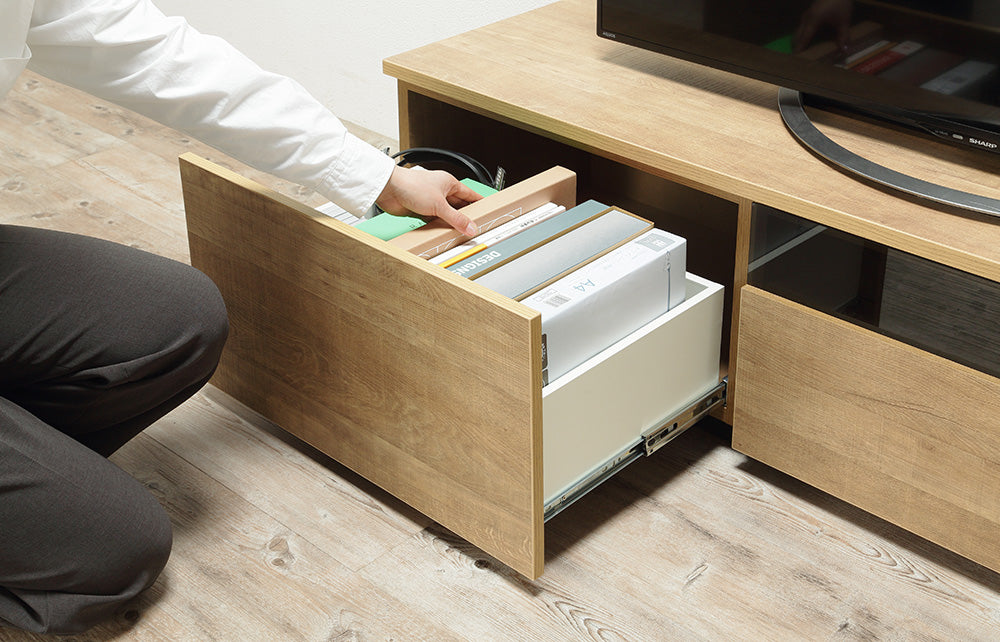 低めのテレビボードはモダンな直線的デザインで、どんな空間にも調和、上質で心地よくお使いいただけます。