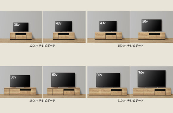 | テレビサイズ・スペック | 【幅120cm】~50インチ目安(天板耐荷重~40㎏) | 【幅180cm】~80インチ目安 | 【幅120㎝】幅(有効)37㎝×3 | ー | 32~65インチ |