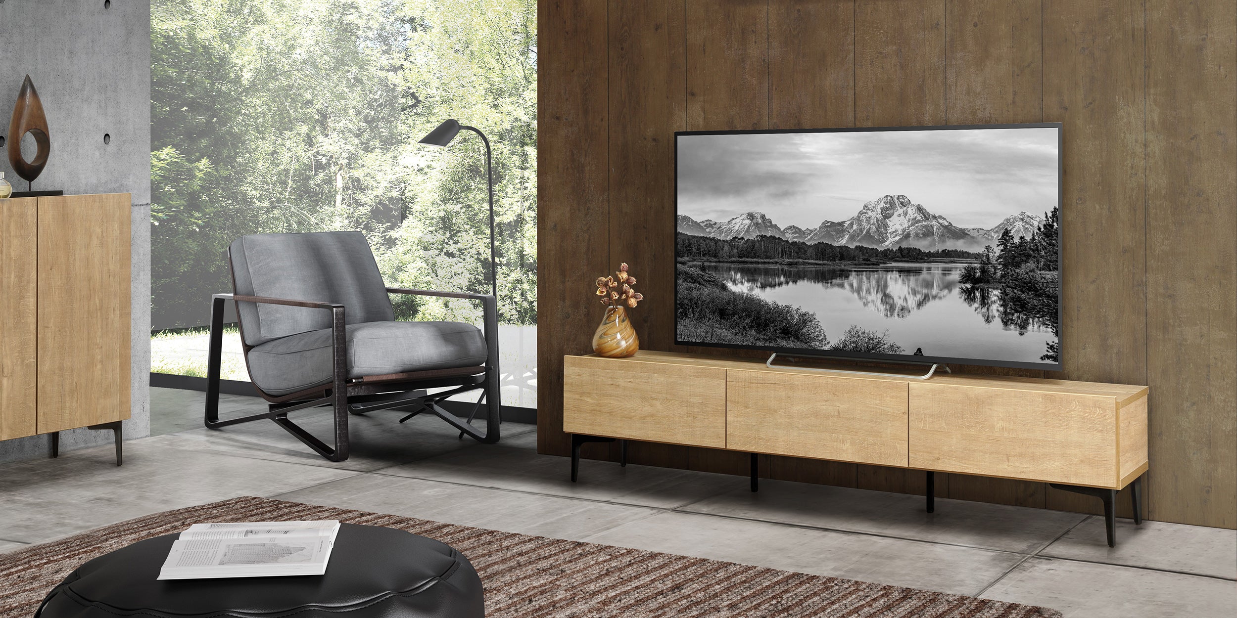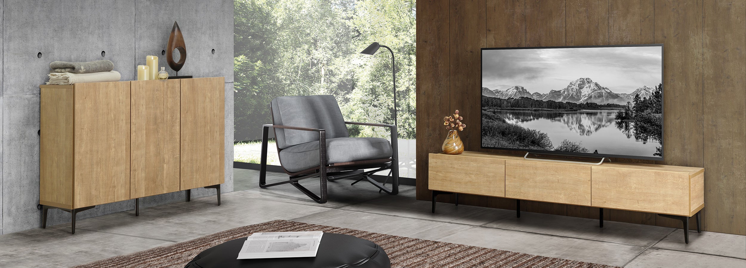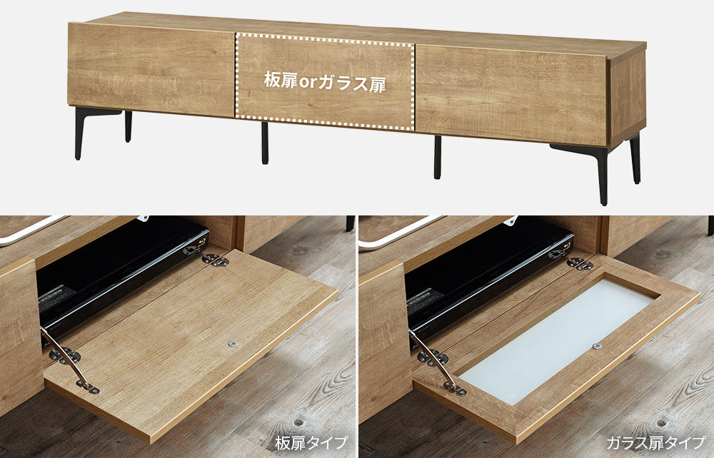 温もり木目とスチールの脚。扉を選べる収納力
