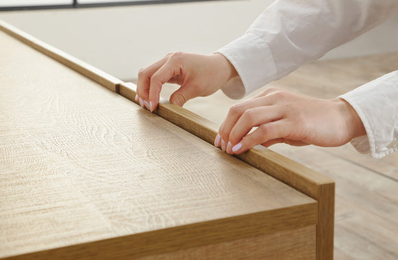 取っ手や枠などが見えず、シンプルフラットなデザイン。手をかけやすい構造により扉の開閉もスムーズに行えます。