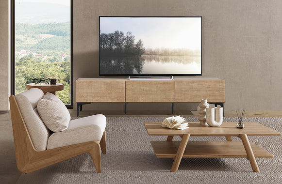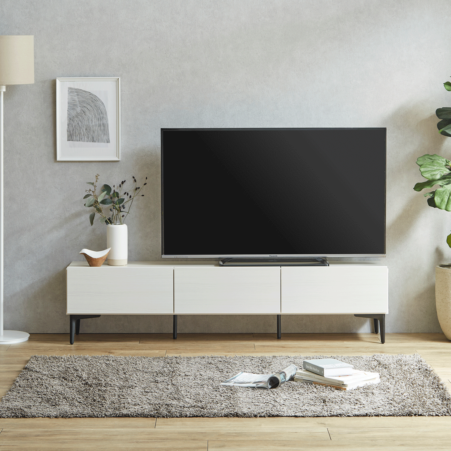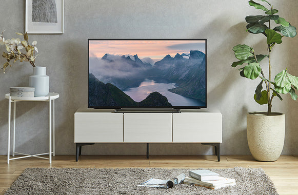 圧迫感のない脚付きテレビボードFVは、フラットなデザインでどんな空間もスタイリッシュにしてくれます。