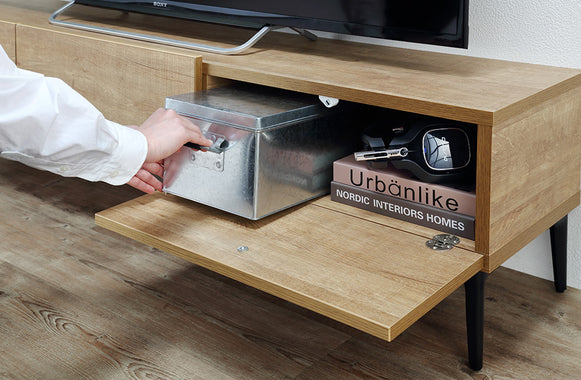 テレビ台。リビングやテレビ周りに必要なものを収納できるため、お部屋