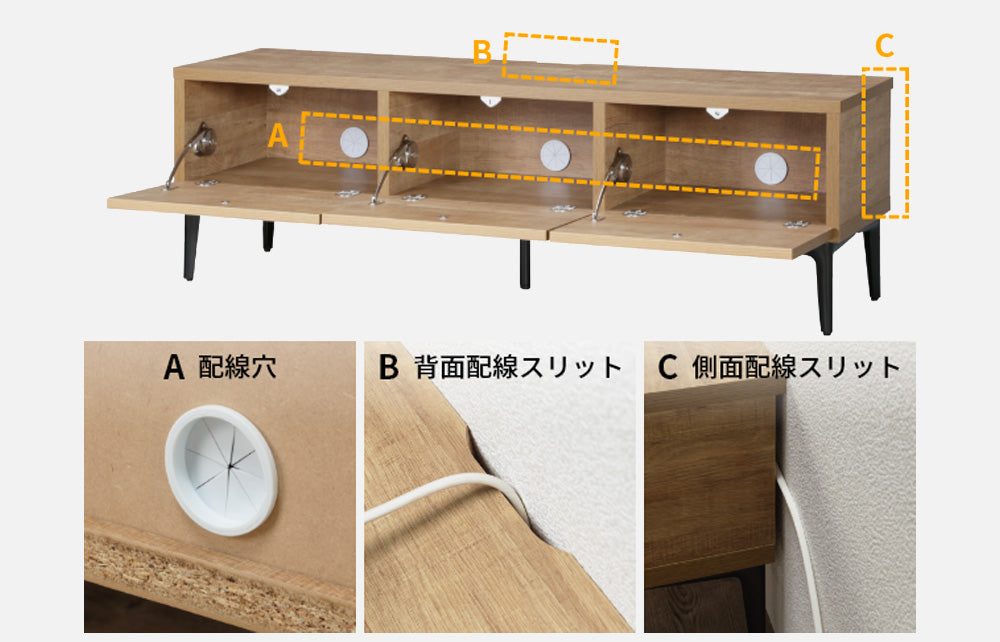 | テレビサイズ・スペック | 【幅120㎝】幅(有効)37㎝×3 | 【幅180cm】~80インチ目安 | 【幅120cm】~50インチ目安(天板耐荷重~40㎏) | ー | 32~65インチ |