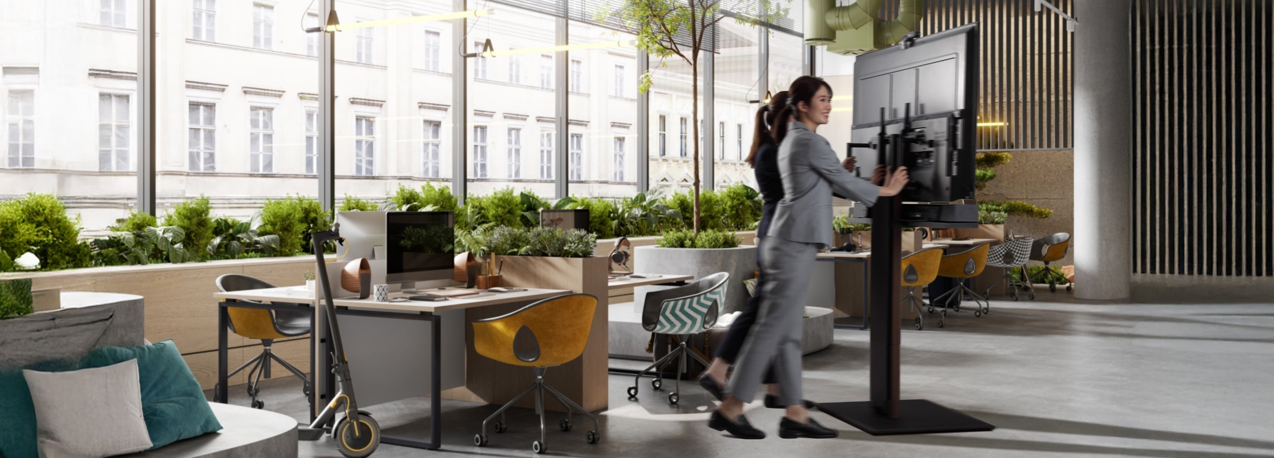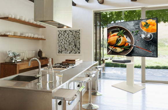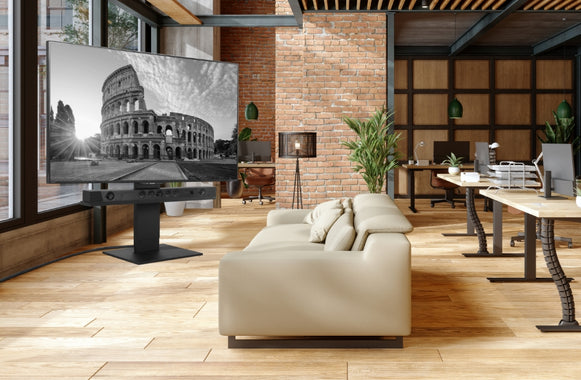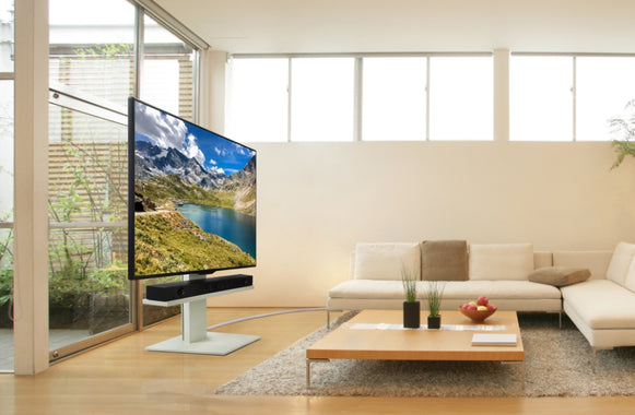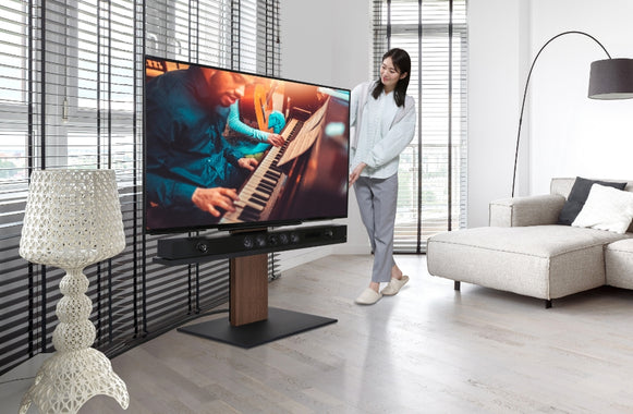 大型テレビに高さと移動の自由を与え、視聴スタイルのみならず暮らし方さえも変えるテレビスタンド。デザインにも磨きをかけたスタイリッシュなモデル。