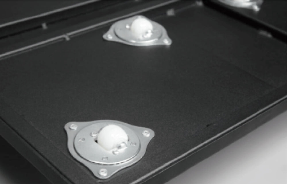掴みやすいハンドグリップ付きなので、重量のある大型テレビの移動・回転が快適です。 また、背面の配線コードやケーブルを見せない「スライド式背面パネル」も付属。