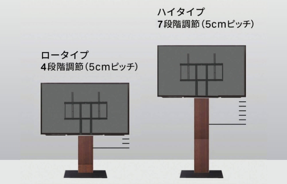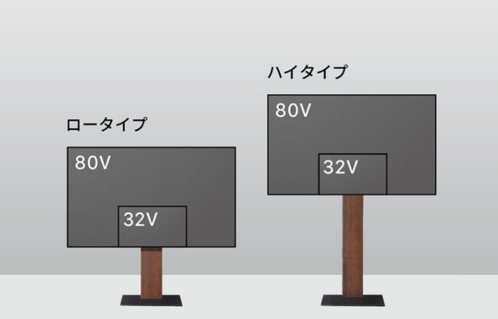ダイニングでテレビを見たり、デスクに引き寄せてweb会議やオンライン授業、 ベッドに寝ながらテレビを楽しむ時に最適なHIGHTYPEの2種類から選べます。