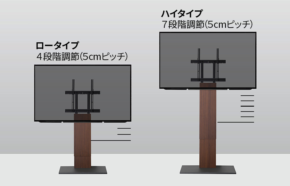 ダイニングでテレビを見たり、デスクに引き寄せてweb会議やオンライン授業、 ベッドに寝ながらテレビを楽しむ時に最適なHIGHTYPEの2種類から選べます。